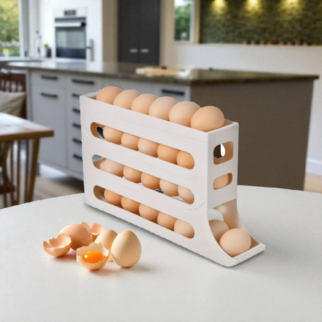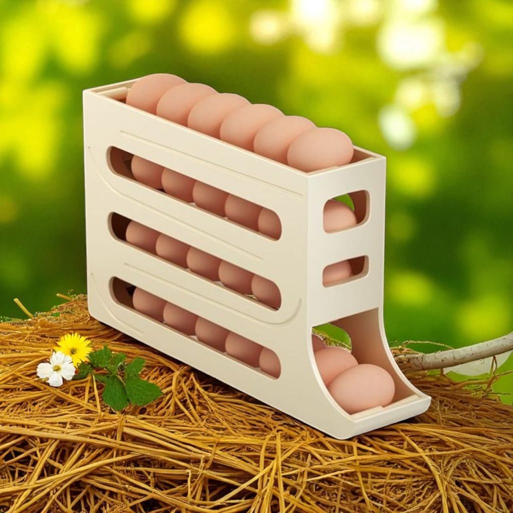 When you take one egg, the next one rolls down gently.
